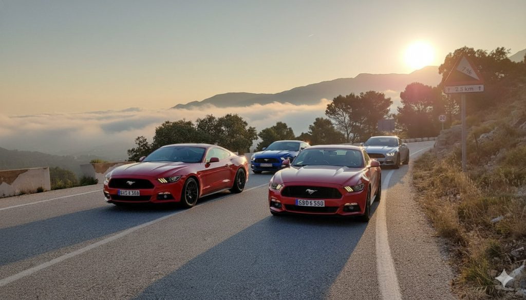 Venta el Borrego (cerca de Alcoy/Banyeres): Esta es la parada legendaria para los aficionados al motor en la región. Gran aparcamiento, comida tradicional de montaña (prueba la Olleta Alcoiana) y un ambiente muy acogedor para los propietarios de Mustang.